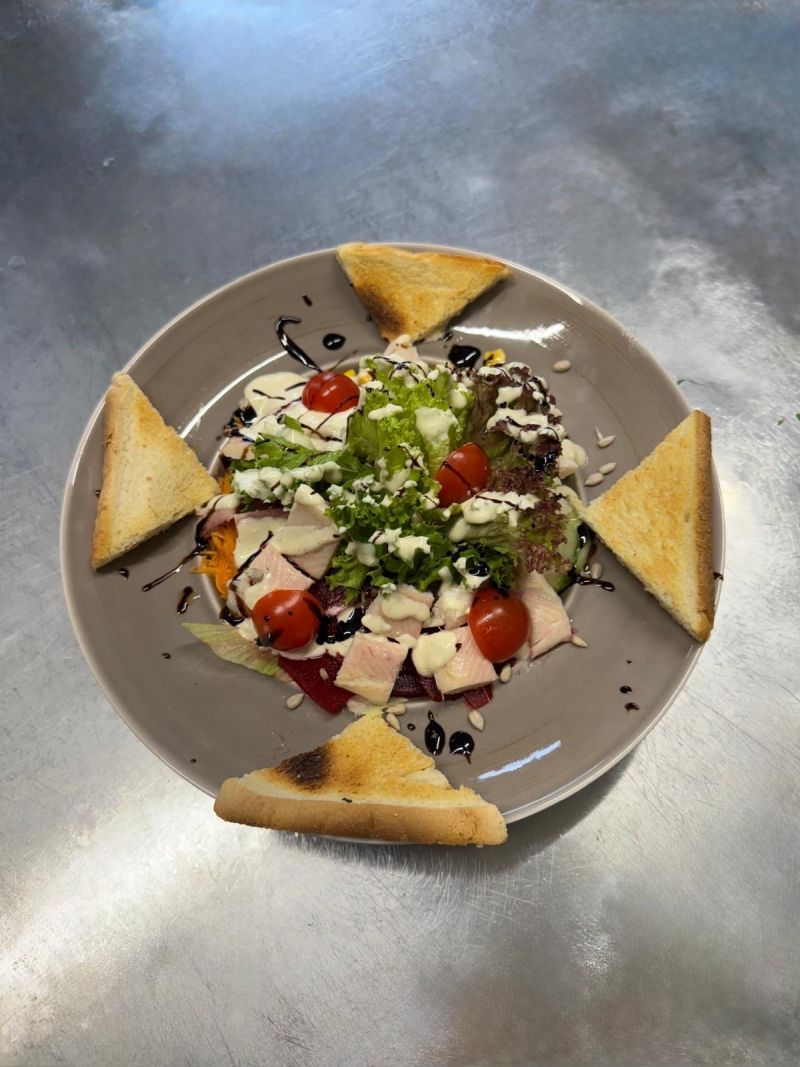 Schinken Käse Toast mit Salatgarnitur (A,C,G,L,M)